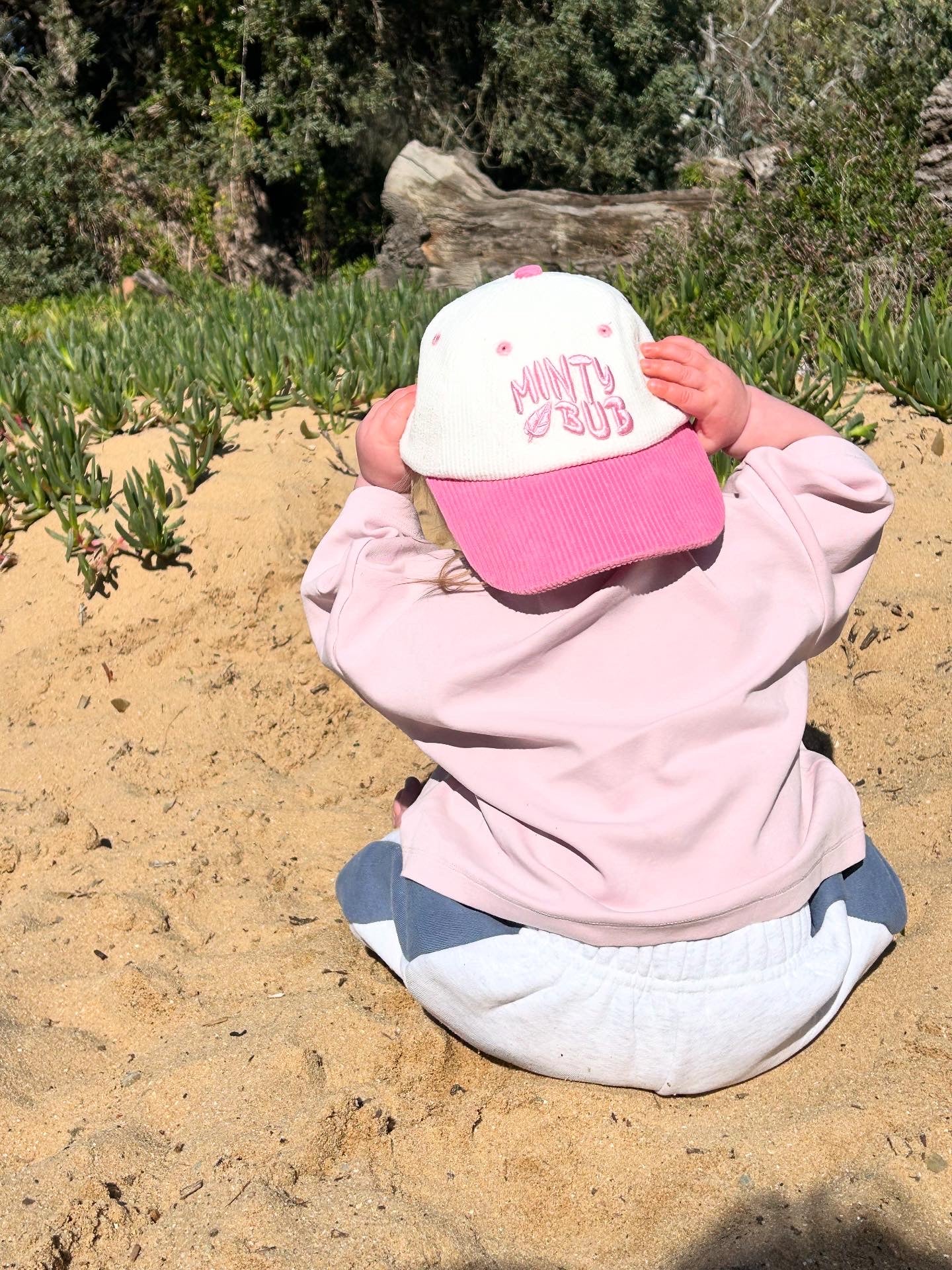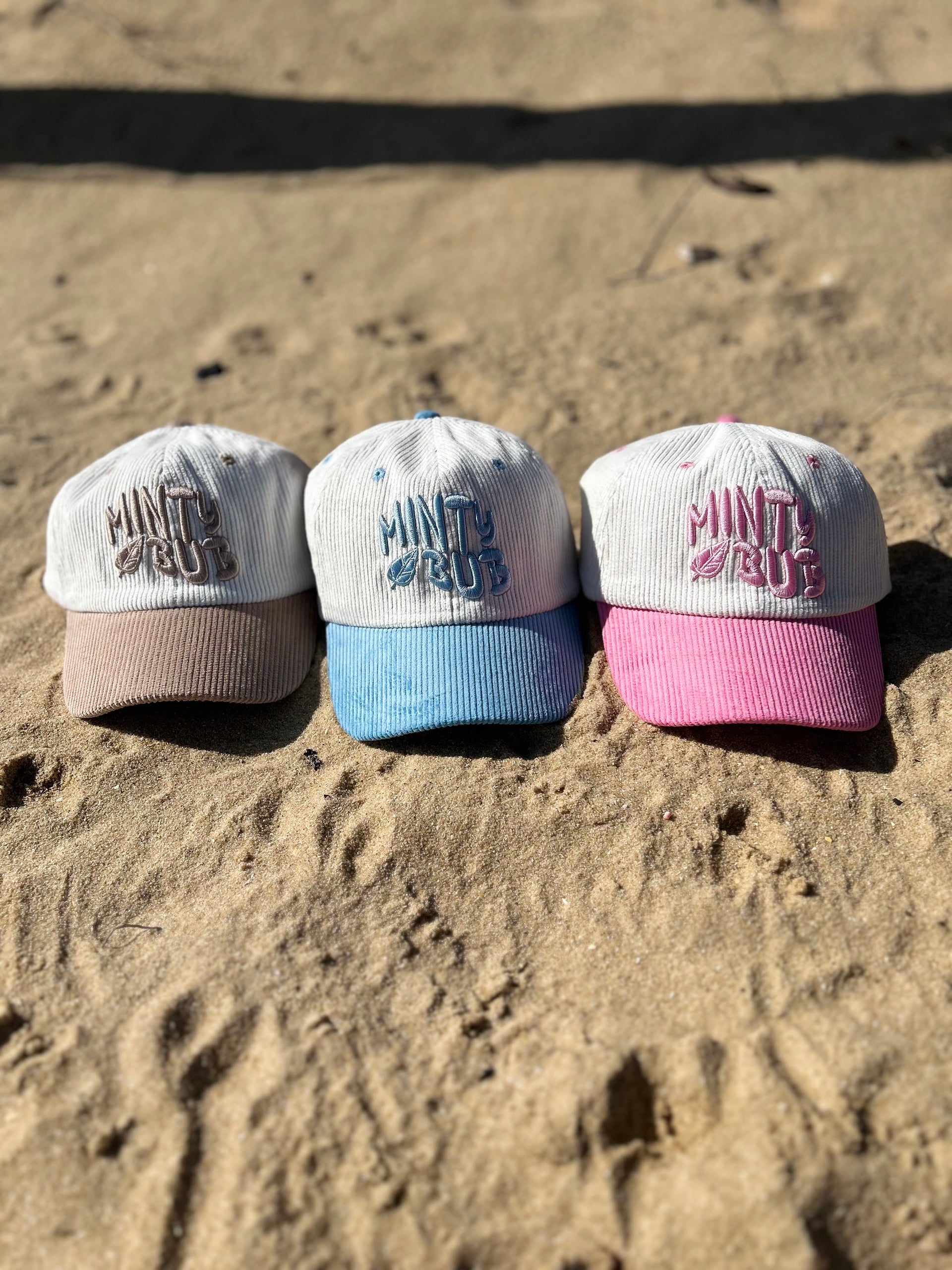 Keep your little ones stylish and sun-safe with our Minty Bub caps! Available in three playful colours – mocha, sky blue, and pink – these corduroy caps are designed for comfort, with a snug yet flexible fit.